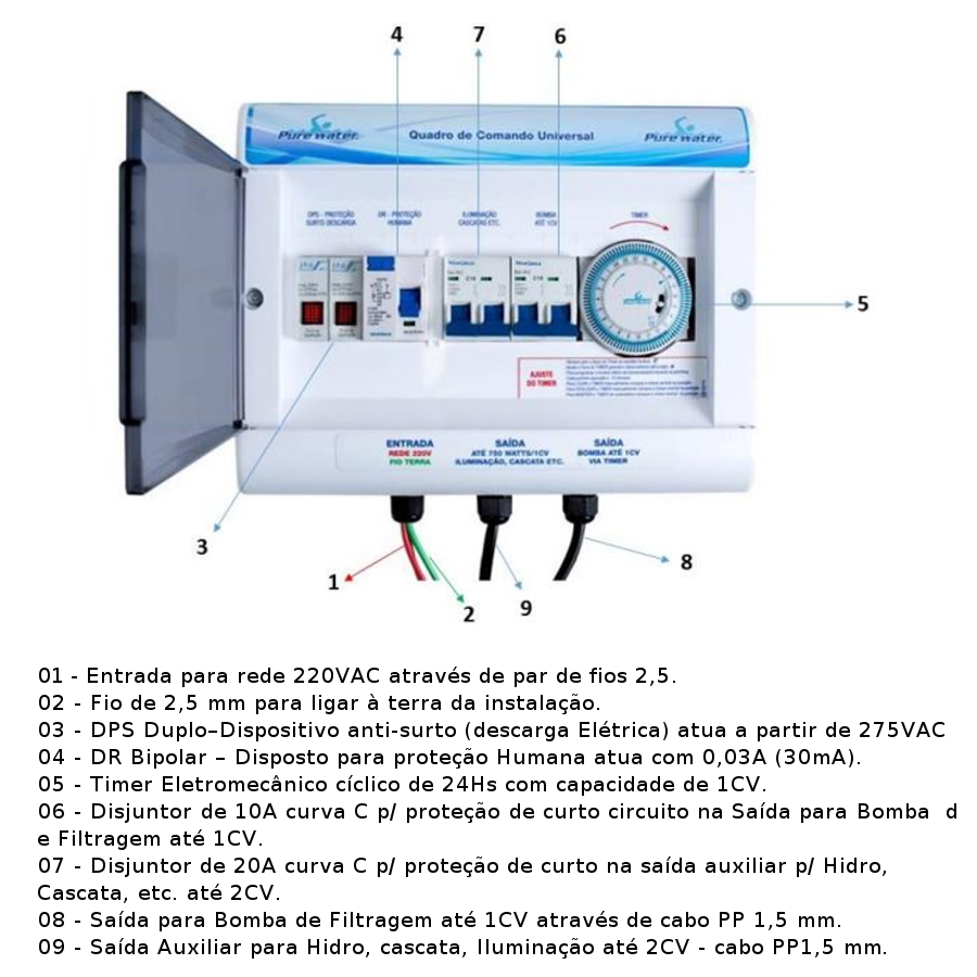 World Pool 1CV – Quadro de Comando Universal – Pooltec