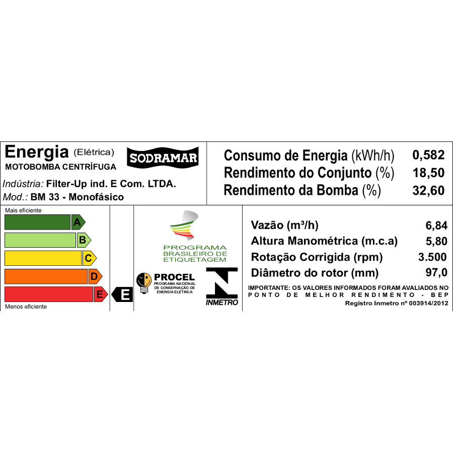 Bomba para piscina 1/3 cv SL BM-33 Sodramar – monofásico 110/220v (motor WEG)