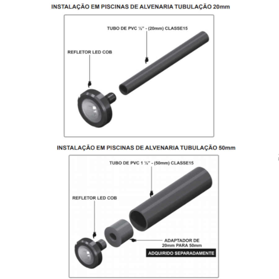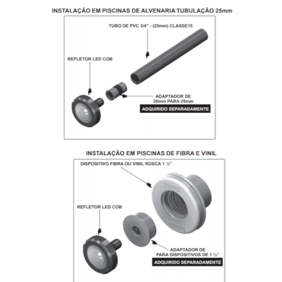 Atenção: O refletor LED COB necessita de um módulo de comando vendido separadamente.